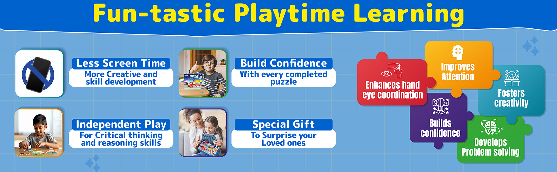 BUILDS KEY SKILLS: Enhances hand-eye coordination, improves attention span, strengthens problem-solving abilities, sparks creativity, and builds confidence—with every puzzle solved."