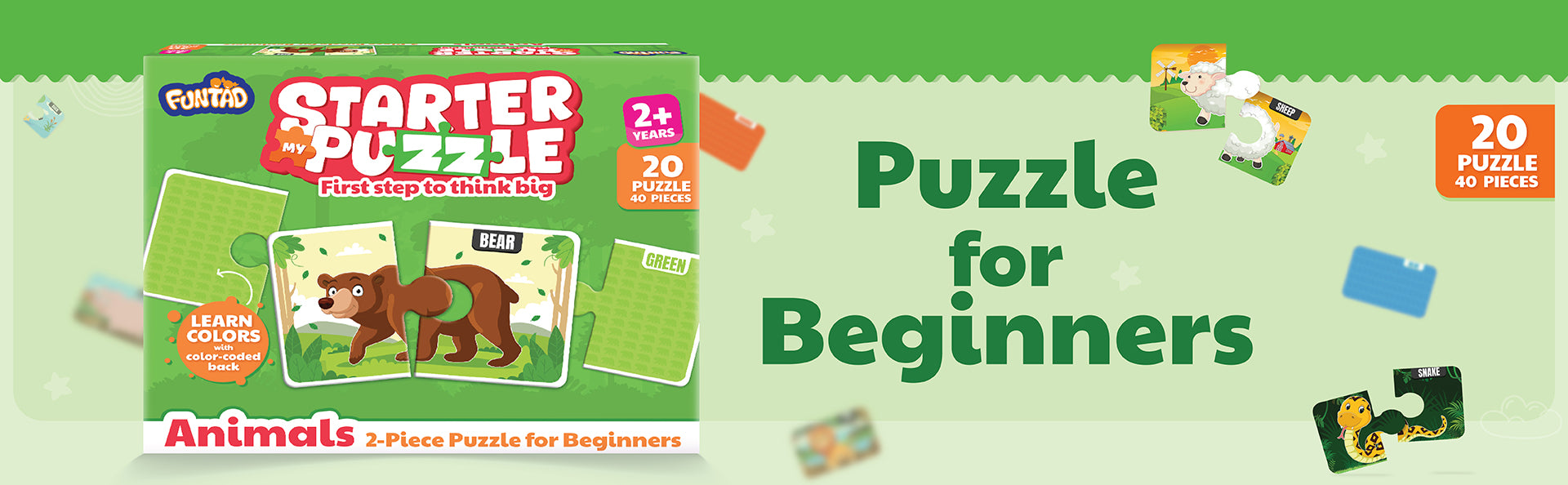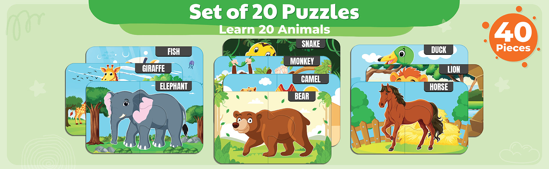 20 two-piece animal puzzles (40 large, easy-to-hold pieces) — specially designed for beginners and curious little learners.