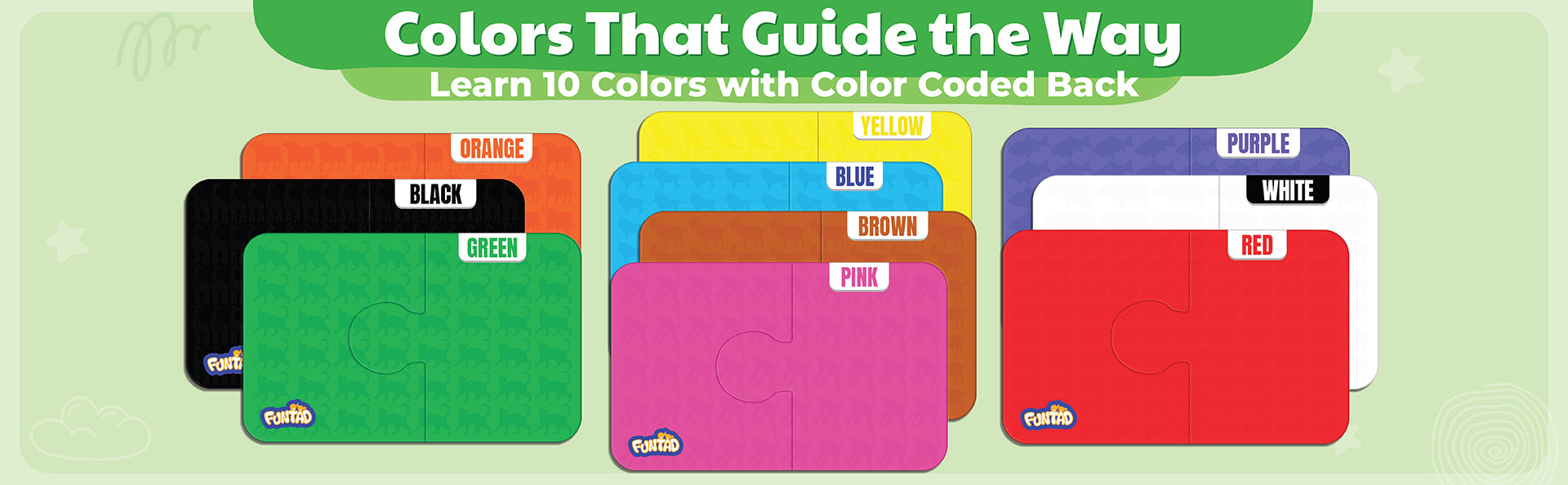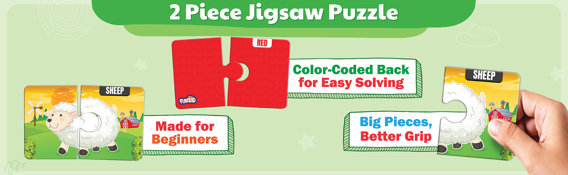 INCLUDES: 20 animal-themed, two-piece puzzle sets (40 pieces in total) with bright, playful images—perfectly sized for tiny hands and curious little minds.