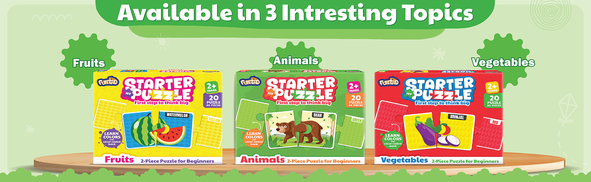 Introduce your little one to the joy of puzzles with My Starter Puzzle, a specially designed beginner’s set! This pack comes with 20 two-piece puzzles (40 pieces in total)—just right for tiny hands and curious minds. On the front, bright animal themes help kids learn animal names in a fun, visual way. On the back, color-coding makes matching easier while teaching color recognition. This simple yet exciting activity helps children discover animals, colors, memory, focus, and problem-solving skills—all while having loads of fun!